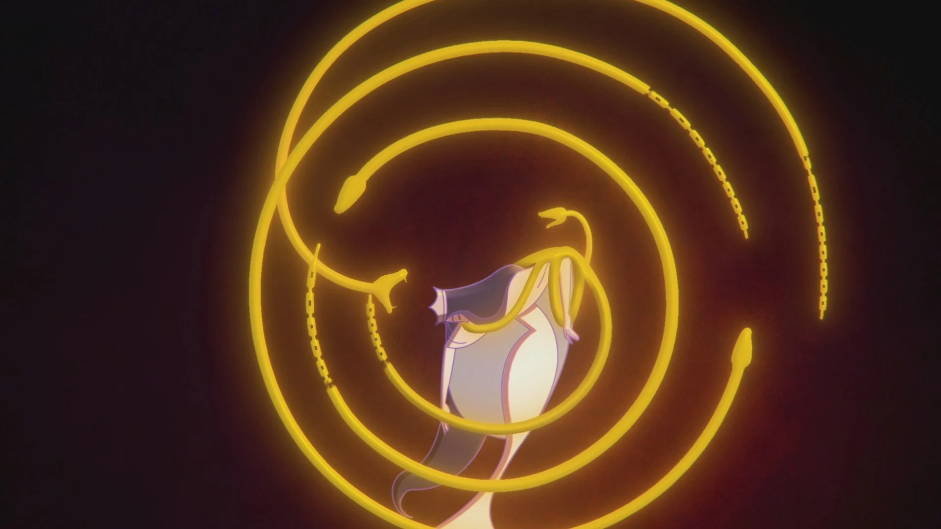 By reflecting on the dissonance between how the narrator presents the story and how I perceived it, I began to consider how my own creative work could explore these gaps. I wanted to translate that tension into visual storytelling, showing that narrative perception is never singular and that viewers can experience multiple truths simultaneously. In my animated version of Montgomery’s tale (see above), the narrator’s voice remains very close to the original text, just slightly abridged. The visuals, however, tell a different story. Where the narration judges, the imagery sympathizes. For example, the suitors’ golden engagement rings become chains and snakes through the Princess’s subjective experience (see Figs. 1 and 2). Through this layering, I invite the audience to decide which story feels truer, or perhaps to find a third meaning of their own.